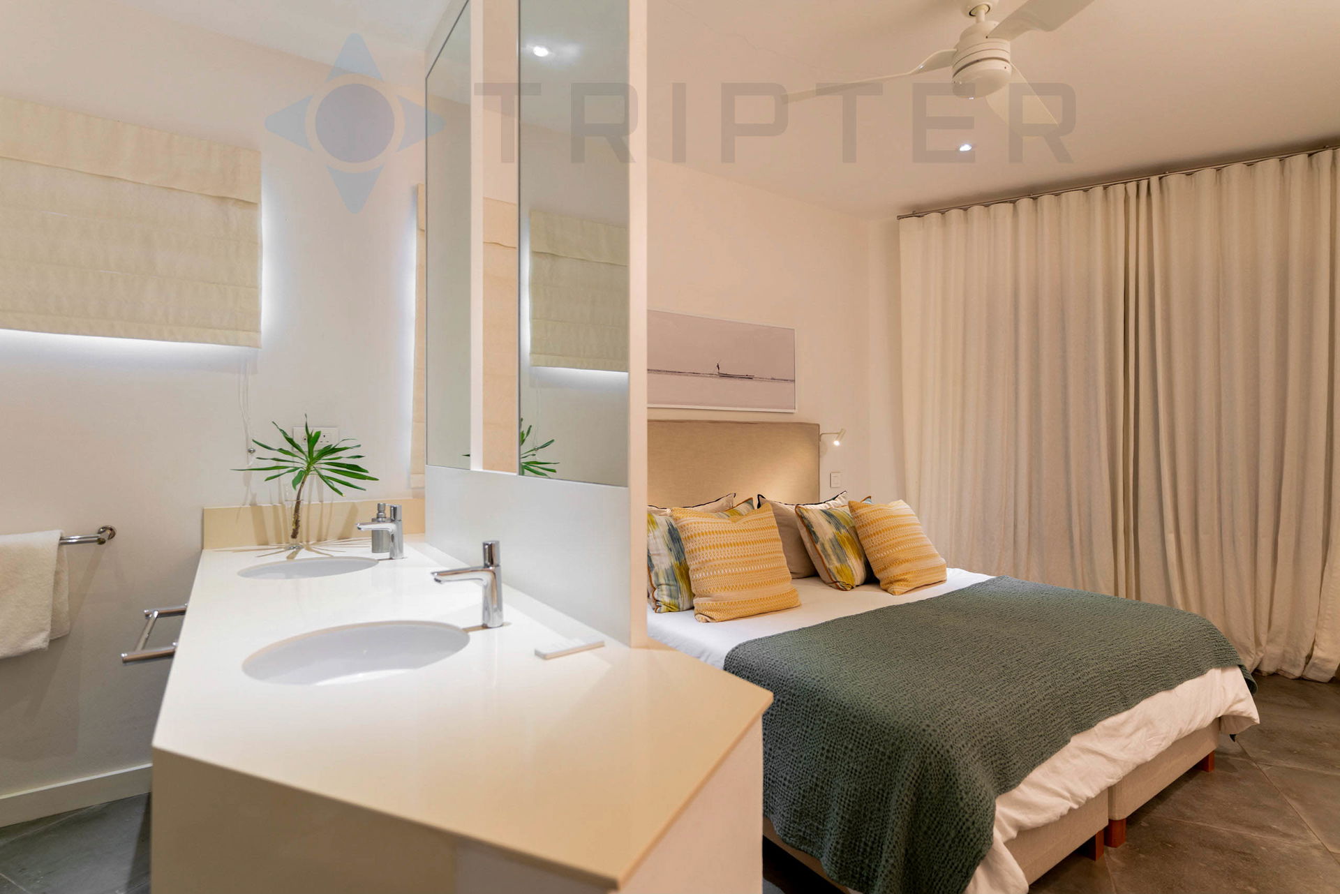 With 500 m² of tastefully furnished living space on a 1200 m² plot, this beach villa is designed for large groups. It features seven spacious bedrooms and generous living areas, perfect for relaxation and socializing.